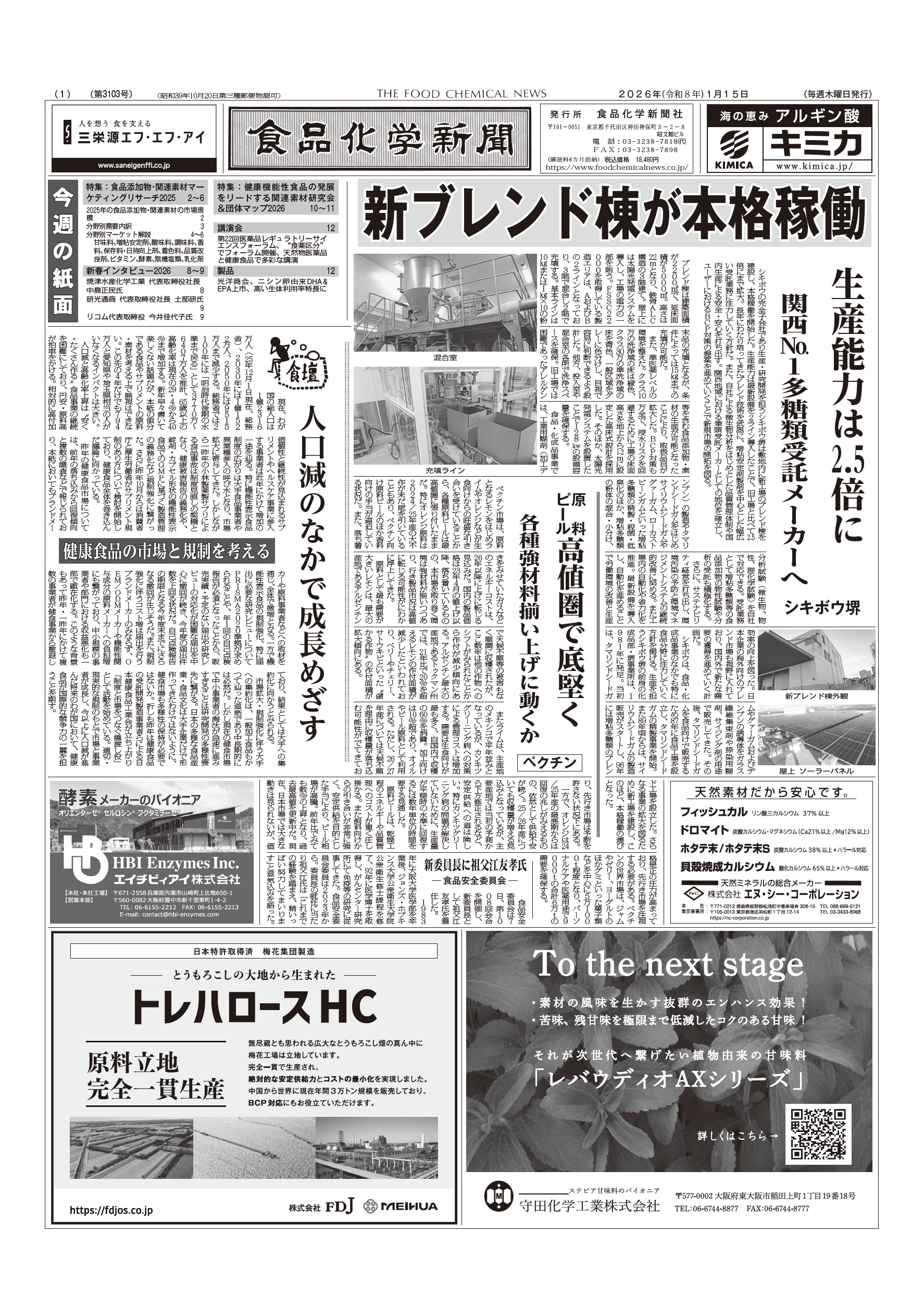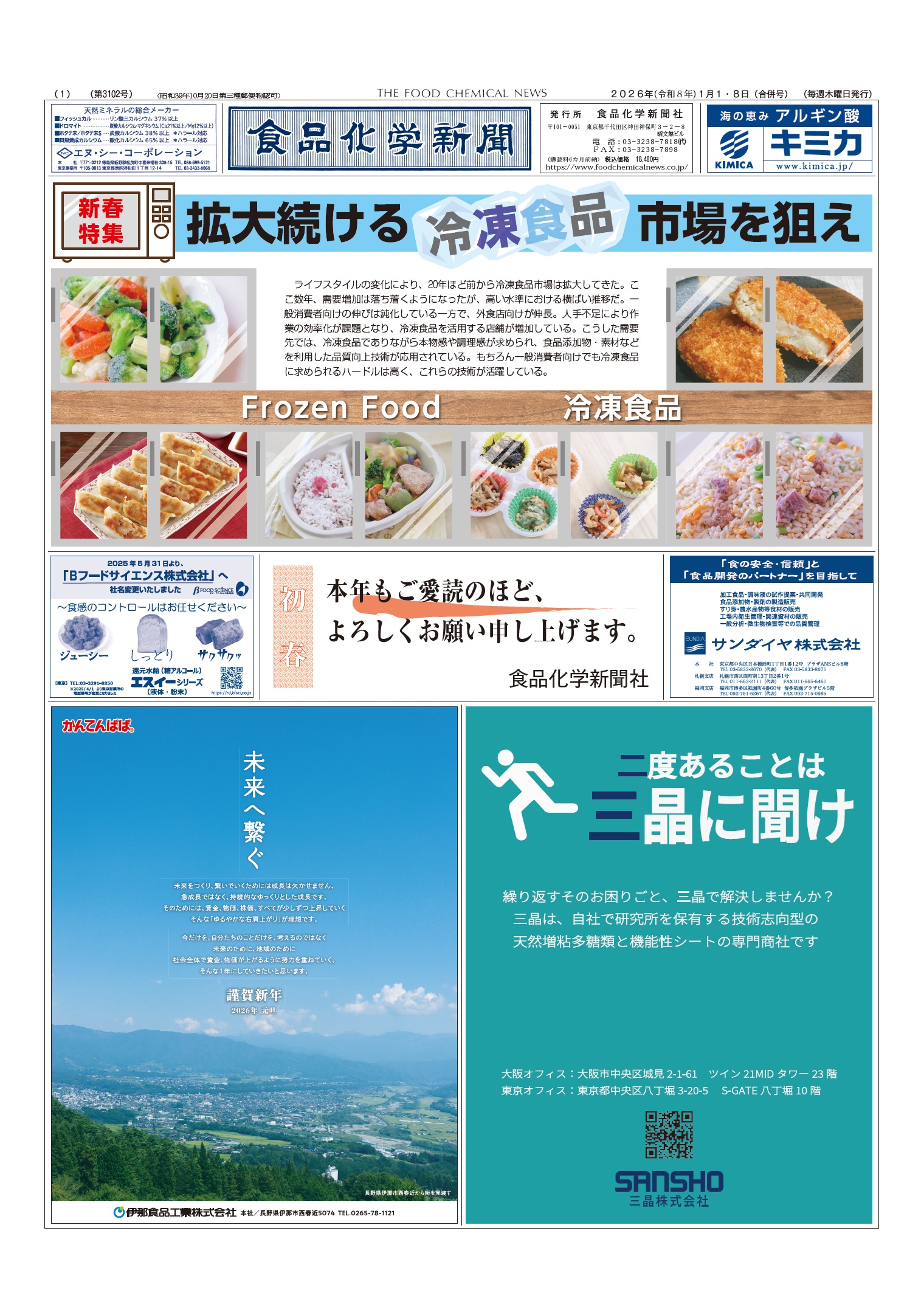 日本で唯一の食品添加物・食品素材原料を取り扱う新聞社です。