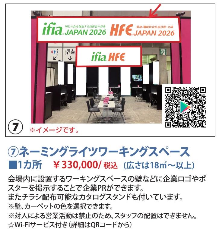税込 (広さは18㎡~以上) お問い合わせは事務局まで。 - 2026/1/1 新年あけましておめでとうございます🎍本年もどうぞよろしくお願い申し上げます。出展申込締切は1月末となっております。ミニブース(4㎡)は264,000円~ご出展可能です。小間位置に限りがございますので、ご出展ご検討される際は、どうぞお早めに事務局までお問い合わせください。TEL:03-3238-7520 / Email:ifia@foodchemicalnews.co.jp